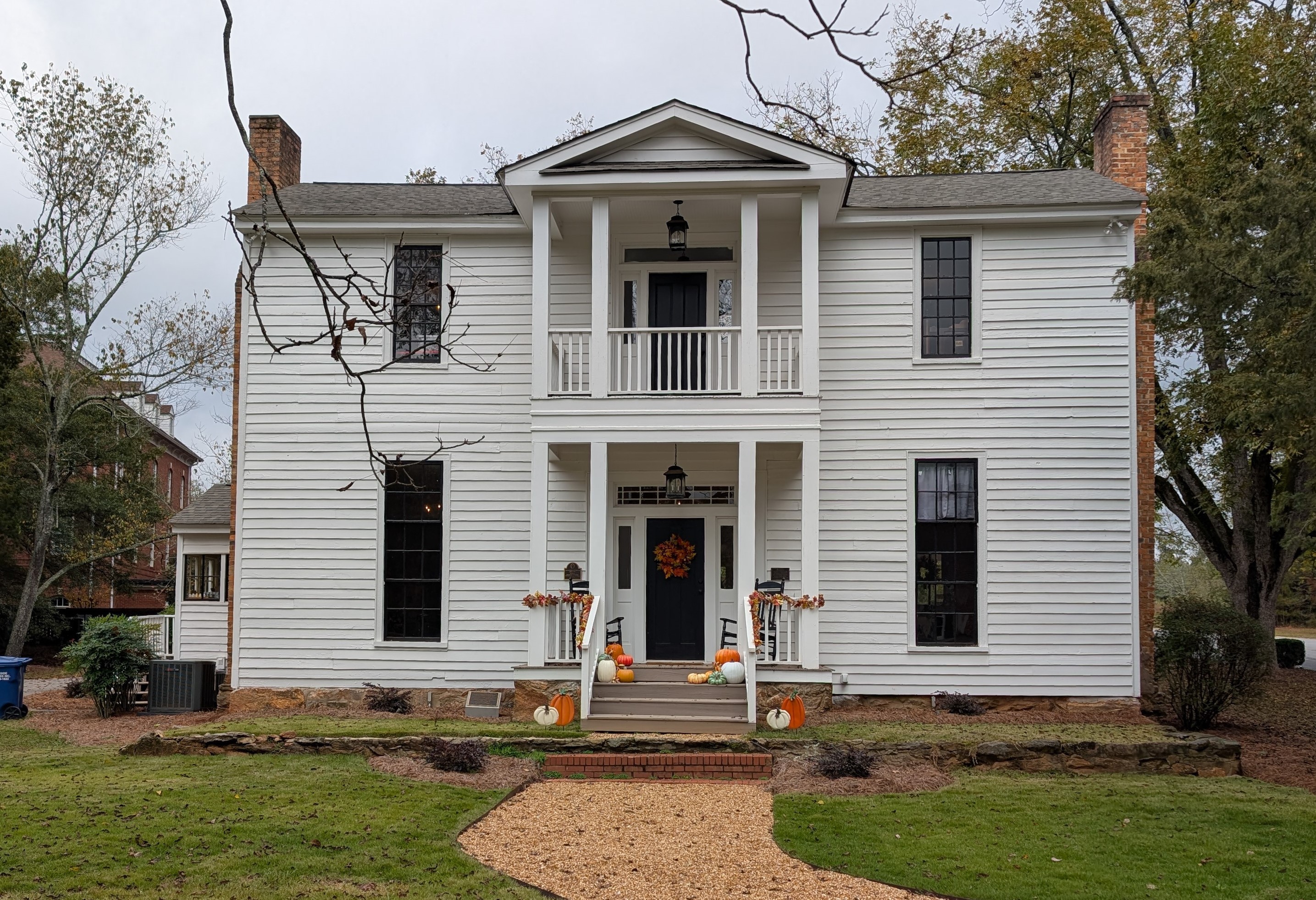 Description courtesy of Mark Reinberger: The William Daniel House, on Founders Boulevard in Oconee County, is a wood-framed antebellum farmhouse, with an I-house form and a central hall plan. It has unusual floor-length windows, a central doorway with sidelights and transom, and a two-story porch on the facade.